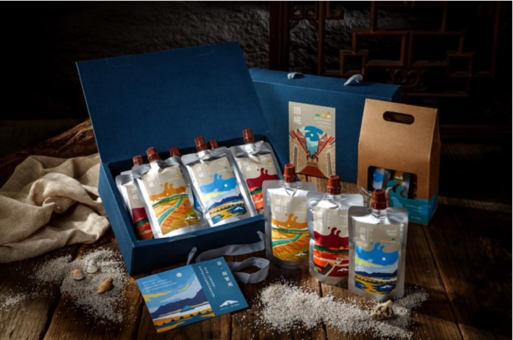 接著,他們把目光投向海域。金門人熟悉的「海石花」與「海木耳」飲品,曾是夏日的清涼記憶,卻因保存不易而逐漸淡出市場。翁皓梅敏銳地捕捉到這份集體記憶的價值,與鄭維慶攜手合作,運用現代化滅菌與常溫保存技術,成功開發出「海木耳石花凍」。這不僅讓傳統飲品再生,也賦予它新的文化意義——從家庭廚房裡的手工涼品,轉化為能登上伴手禮架的現代商品。